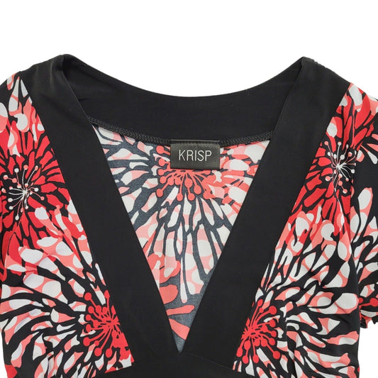 Krisp Vintage 90's Red & Black Floral V-Neck Dress Top Womens UK Size 8