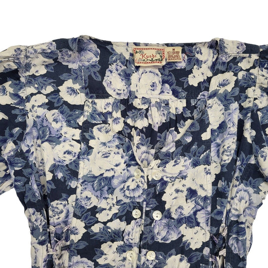 Kushi 90s Vintage Blue Floral Print Daywear Dress Women's Size M 10