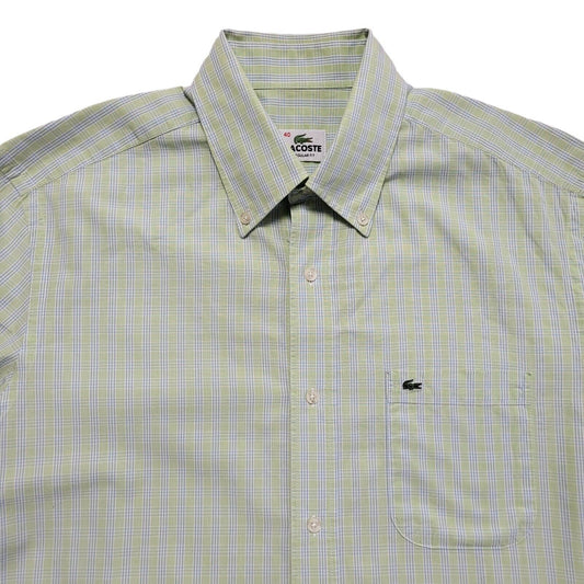 Lacoste Vintage 90's Green Blue Check Short Sleeve Shirt Men's UK L