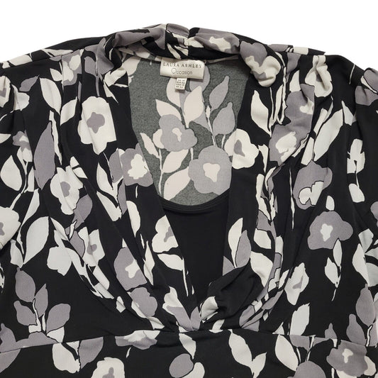 Laura Ashley Vintage Y2K Black Floral Short Sleeve Top Womens Uk Size 14