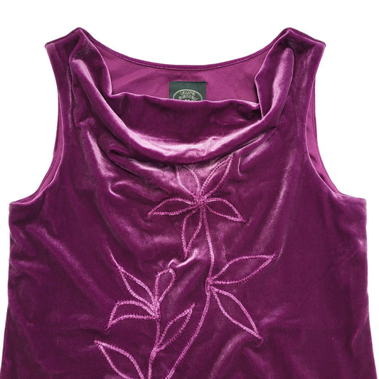 Laura Ashley Vintage 90's Purple Velour Floral Cowl Neck Top Womens UK Size M