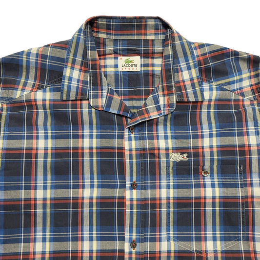 Lacoste Sport Vintage Y2K Blue & Red Checked Long Sleeve Shirt Men's UK Size M