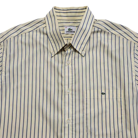 Lacoste Vintage 90's Yellow Blue Striped Short Sleeve Shirt Uk Men's Size L