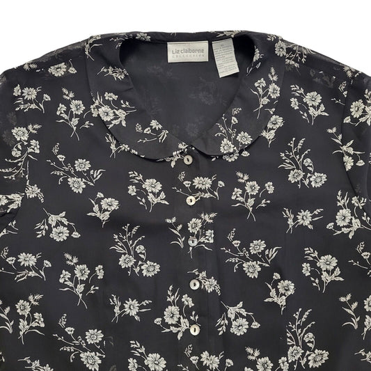 Liz Claiborne Vintage 90's Black & White Floral Blouse Womens UK Size 10