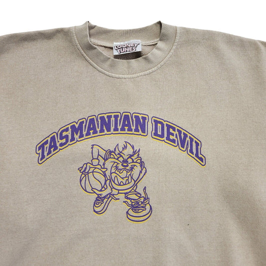 Looney Tunes Vintage 80's Beige Tasmanian Devil Sweatshirt Mens UK Size XL