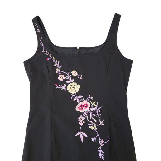 Linea Vintage 90s Black Pink Floral Dress Uk Women's Size 10