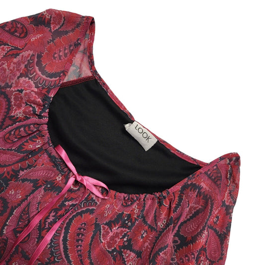 Look Y2k Vintage Pink Black Floral 3/4 Sleeve Dress Uk Women's Size 10