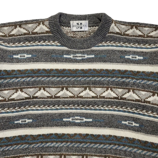 Menspunt Vintage 80s Grey Blue Geometric Crew Neck Jumper Men's UK L