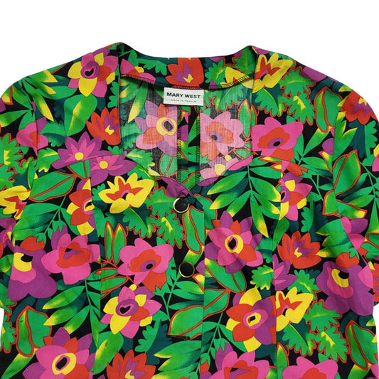 Mary West Vintage 80's Green Pink Floral Daywear Shift Dress Uk Women's Size 14