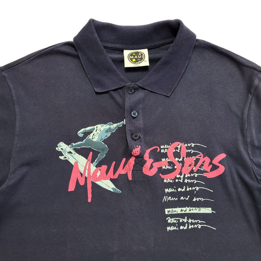 Maui & Sons Vintage Y2K Blue Short Sleeve Polo Top Shirt Men's Size S