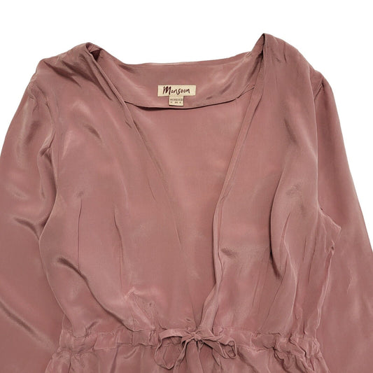 Monsoon Y2K Pink Long Sleeve Tie Front Silk Cardigan Womens UK 12