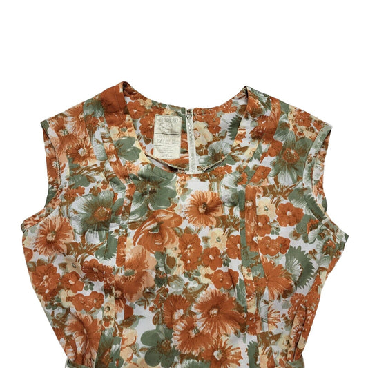 Modern Style Vintage 60s Orange Green Fit & Flare Dress Uk Women's Size 12