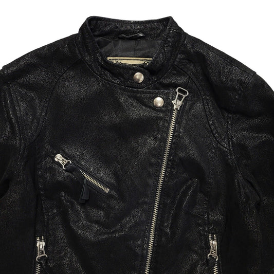 New Look Black Zipped Leather Jacket Uk Women's Size 8