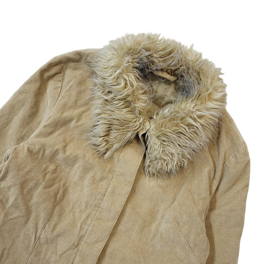 New Look 90s Vintage Beige Faux Fur Penny Lane Style Coat Uk Women's 10