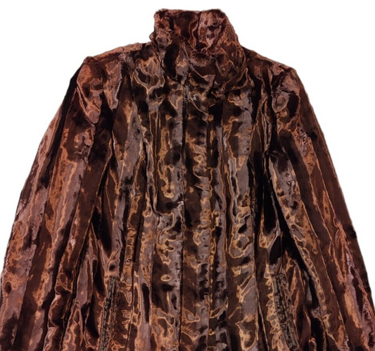 Next 90s Vintage Brown Faux Fur Button High Neck Coat Uk Women's 12
