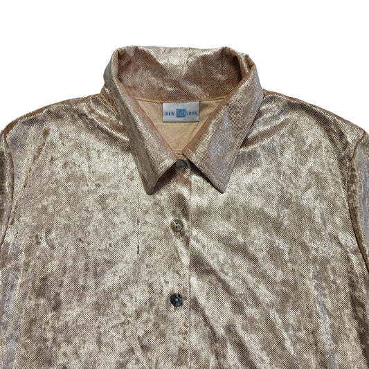 Next 90s Vintage Gold Mesh Button Up Blouse Women's Size 14