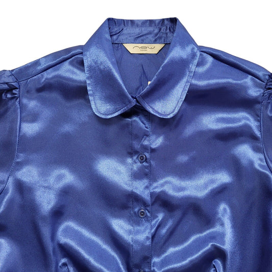New Look Vintage Y2K Blue Belted Satin Short Sleeve Womens Shirt BNWT Size 12