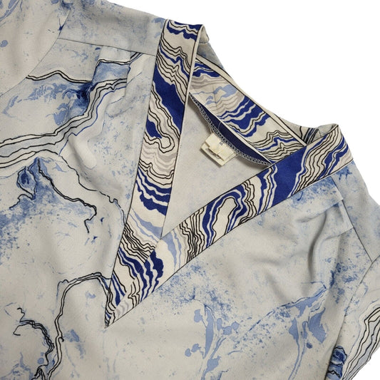 70s Vintage White & Blue Floral & Marble V-Neck Shift Dress Women's 12