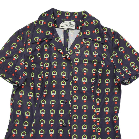 70s Vintage Solfin Black Geometric Button Dress Women's Size 16/18