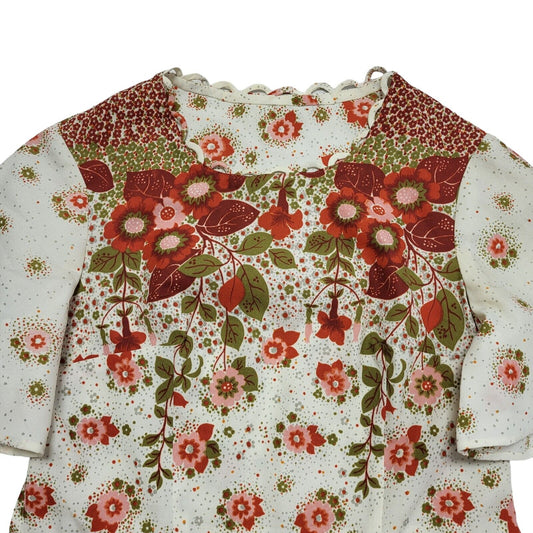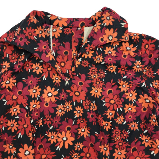 70s Vintage Red Floral Collared Short Sleeved Shift Dress Women's 14
