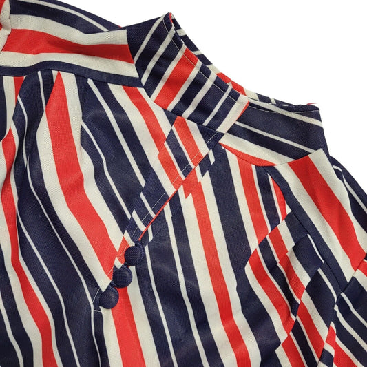 70s Vintage Red, White & Blue Striped High Neck Shift Dress Women's 14