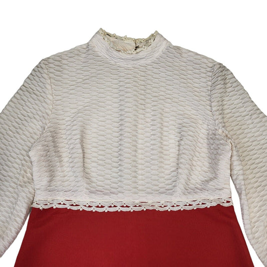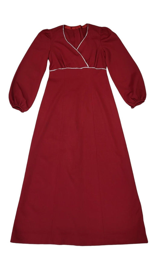 70s Vintage Red Silver Trim Long Sleeve Maxi Dress Women's Size 12