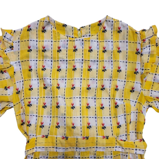 70s Vintage Yellow White Check Fit & Flare Daywear Dress Women's Size 2-4