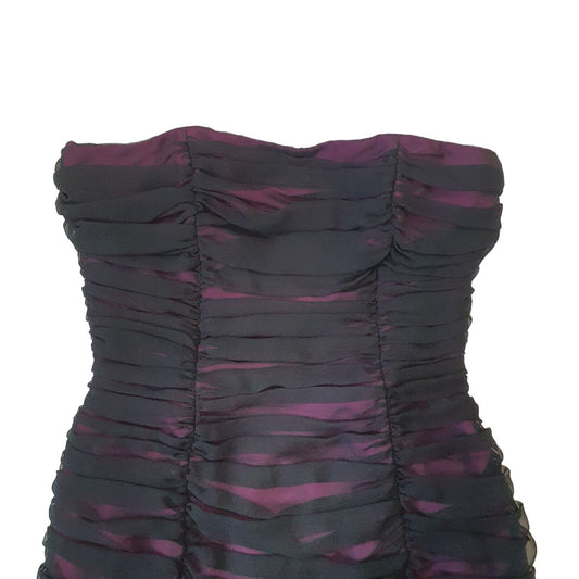 Next Vintage 90s Black & Pink Rouched Strapless Evening Dress Womens UK Size 12