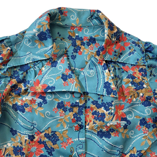 Norma Della 70s Vintage Blue & Red Floral Collared Pleated Dress Women's Size 8