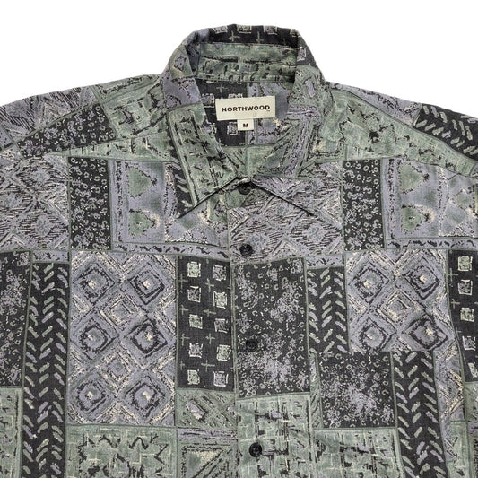 Northwood Vintage 90's Blue Green Abstract Short Sleeve Shirt Men's UK M