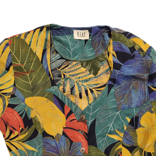 Palmwave Vintage 90's Blue & Green Floral Hawaiian Short Sleeve Shirt Mens UK L