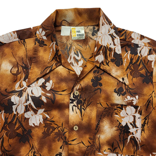 Paul Howard Vintage 80's Brown Floral Long Sleeve Shirt Men's UK Size M