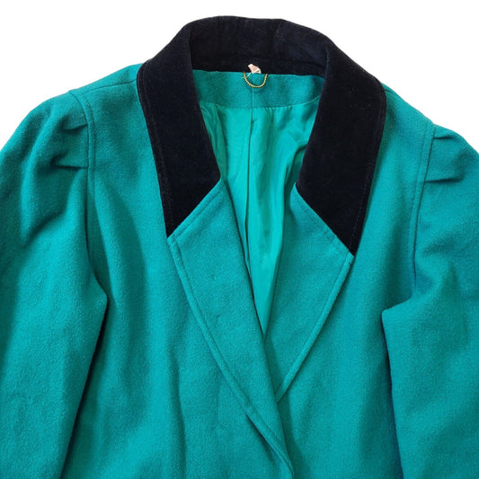 80s Vintage Green Double Breasted Coat Women Size 10 EU 38