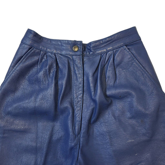80s Vintage Blue Tapered Leather Trousers Women's Size 8 W26 L31