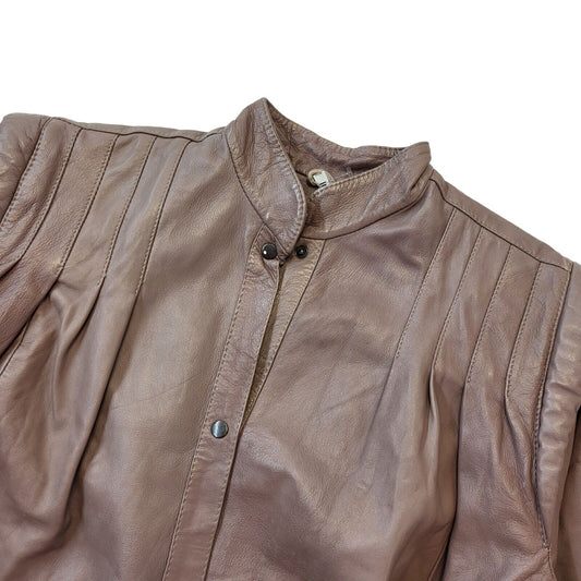 80s Vintage Brown Leather Jacket With Snap Fastenings Women's Size 18