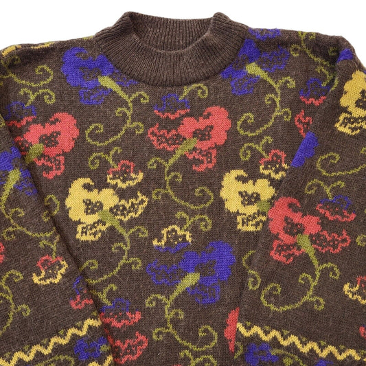 80s Vintage Floral Round Neck Jumper Women's Size 14