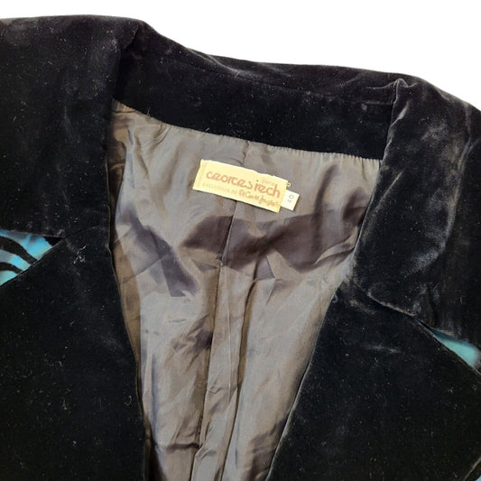 80s Vintage Blue & Black Button-Up Party Jacket Women's Size 12
