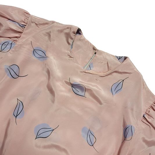 80s Purple Patch Vintage Pink Lilac Leaf A-Line Daywear Summer Dress Women's 12