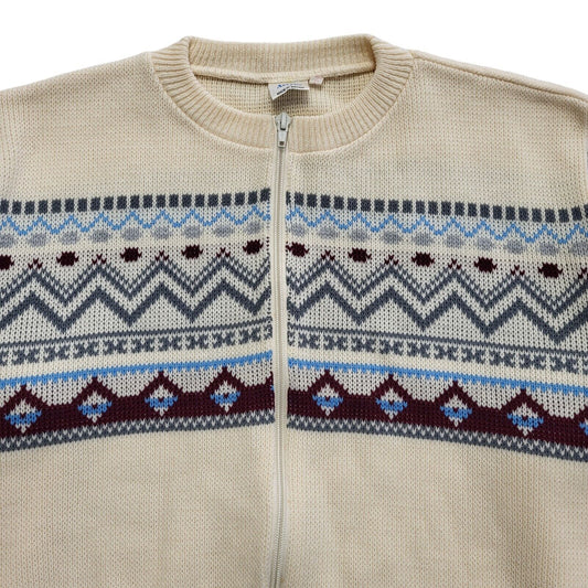 80s Vintage Cream & Brown Zipped Cardigan Uk Women's Size Large