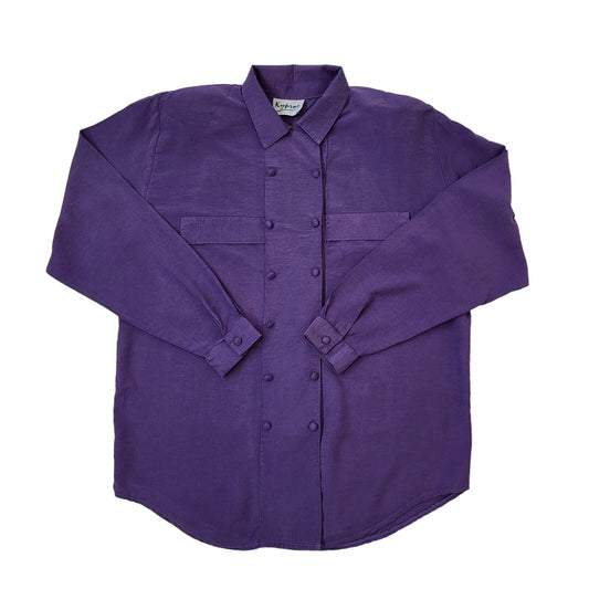 80s Vintage Purple Long Sleeve Double Breasted Blouse Women's Size 12 Eu 40