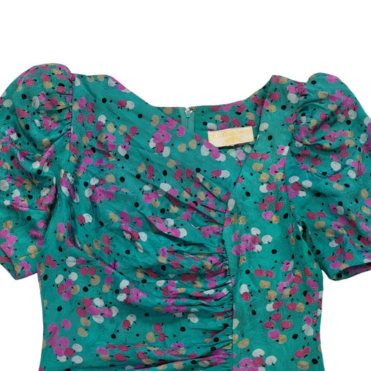 80s Vintage Jill Fitzsimon Green Floral Silk Evening Dress Women's Size 8