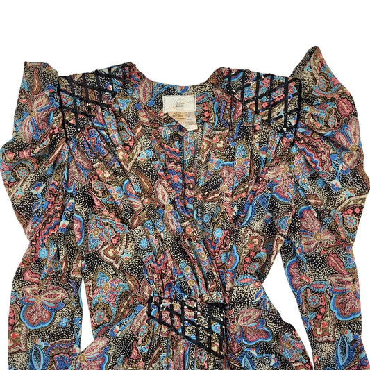 80s Vintage Lucy Richards Multicolored V-Neck Wrap Dress Women's Size 12 BNWT