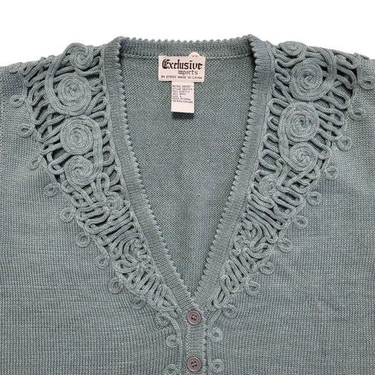 80s Vintage Green Button Sleeveless Knitted Cardigan Uk Women's Size Large