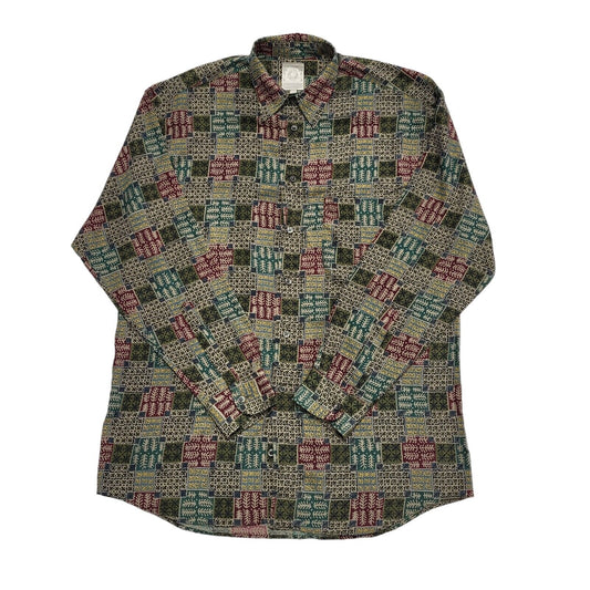 St Michael 90's Green & Red Patterned Viscose Shirt Uk Men's UK S