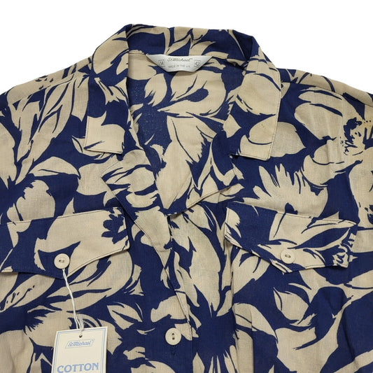 St Michael 70s Vintage Blue & Beige Floral Dress Uk Women's Size 14 Bnwt