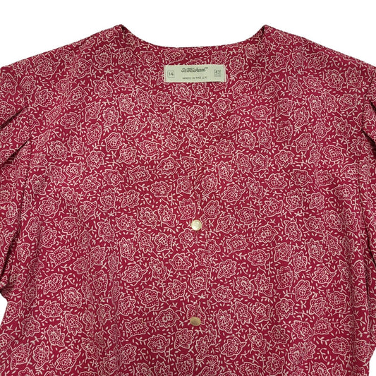 St Michael 90s Vintage Pink & White Floral Dress Uk Women's Size 14