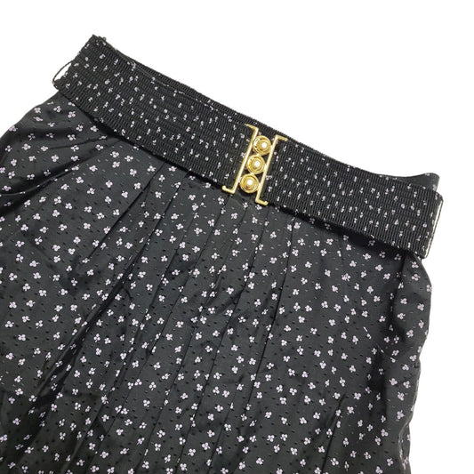 St Michael 80's Vintage Black Micro Floral Midi Skirt Women's Size 12 W30