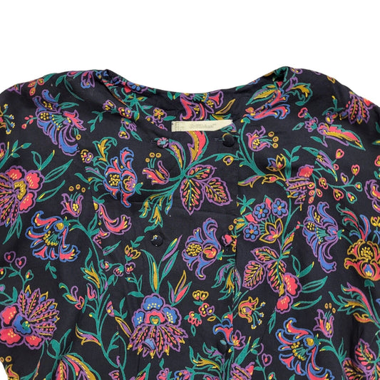 St Michael 70s Vintage ONavy Purple Peplum Buttoned Long Sleeve Dress Women's 14