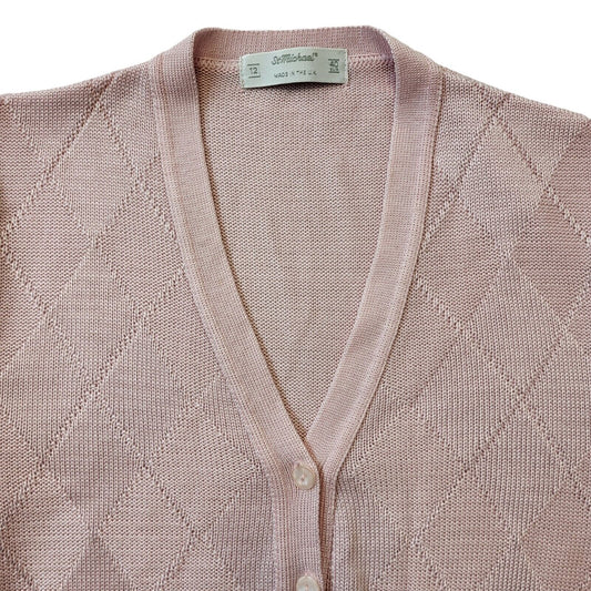 St Michael 90s Vintage Pink Argyle Button Cardigan Women's Size 12 Eu 40