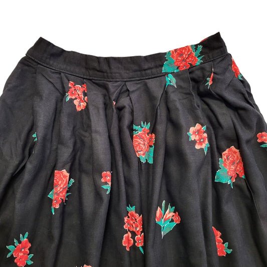 St Michael Vintage 80's Black & Red Floral Midi Skirt Womens UK Size 10 W26